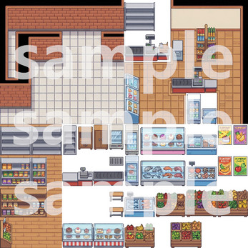 - Store Layouts: Tiled floors, walls, and entryways to design your ideal supermarket